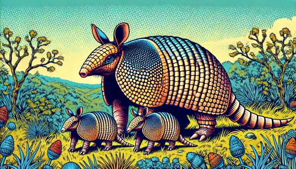 Title: Vibrant Encounter: Nine-Banded Armadillos in a Texan Pop Art Landscape Photo ID: 59254 |