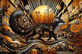 Golden Scales Meet Cubist Waves in Alligator Art from Houston