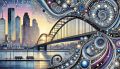 "Sunset Symphony: Cubist Perspectives on Houston’s Buffalo Bayou Bridge"