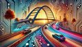 Stylized Vibrant Representation of Houston's Iconic Bridge and Skyline