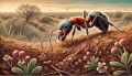 Intricate Illustration of Texas Harvester Ant Amidst Desert Flora