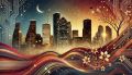 Enchanting Vision of Houston: An Abstract Nighttime Skyline Illustration