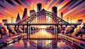 Geometric Sunrise over Houston's Iconic Bridge in Vibrant Colors