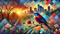 Vibrant Urban Canvas: Stylized Houston Skyline with Flourishes of Nature