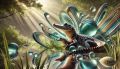 Majestic Alligator and Cub in a Surreal Wetland Ecosystem