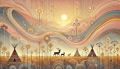 Surreal Dawn at Red River: Deer and Tepee in an Ethereal Landscape