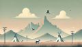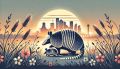Armadillo at Sunrise: A Striking Minimalist Illustration with Offspring