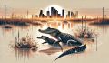 Morning Embrace: American Alligators Amidst Houston's Urban Silhouette