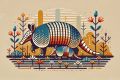 Colorful Illustration of Armadillos Among Native Texan Flora