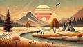 Serene Sunrise Over a Texan River, Featuring Wildlife and Tepees