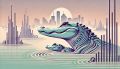Surreal Alligator-Infused Artistic Representation of Houston Skyline