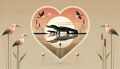 Heart-Wrapped Alligator Mother and Cub in a Sunset-Kissed Wetland