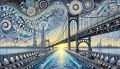 Sunrise at Baytown Bridge: A Gustav Klimt-Inspired Vision in Cool Tones