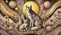 The Coyote Family in a Klimt-Inspired Texan Landscape