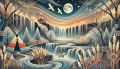 Enchanted Night Tapestry: Surreal Landscapes under a Luminous Moon