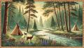 Tranquil Guadalupe River Scene with Native American Teepees and Wildlife