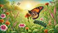 Majestic Monarch Butterfly and Caterpillar in a Lush Texas Garden