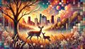 Sunset Serenity: A White-Tailed Deer Fawn Amidst Houston's Skyline