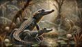 Dawn in the Houston Swamps: A Stylized Depiction of Alligators in Art