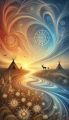 Enchanting Sunrise Over a Mystical Stream in a Surreal Landscape