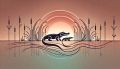 Sunrise in Houston Swamp: A Stylized Glimpse of Alligator Bonding