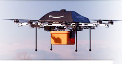 Amazon has promoted Prime Air, which is exploring the possibility of 30-minute delivery to local customers. Once the option was selected and the order placed, a drone carrying the package would simply be deployed to the customer's address. This seems to be a far-off possibility, however, since FAA regulations restrict drones flying in populated areas or out of sight of the operator.