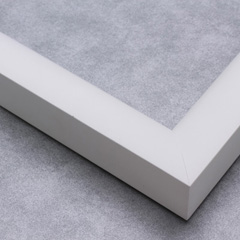 This heavy, white satin finish frame feature a steep curve profile that draws the eye easily toward the artwork.